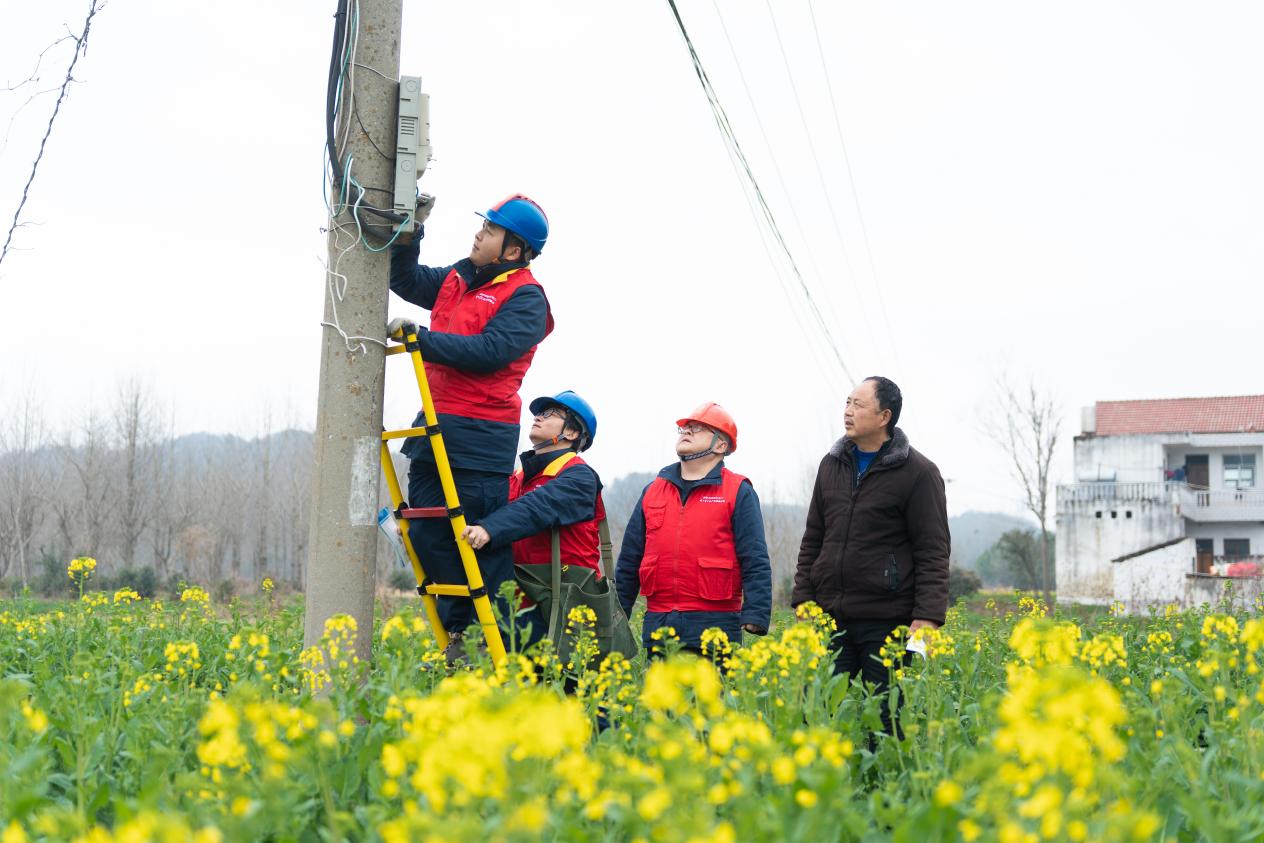 3月3日,国网红安县供电公司组织青年志愿者走进田间地头帮助居民排查春耕用电隐患。
