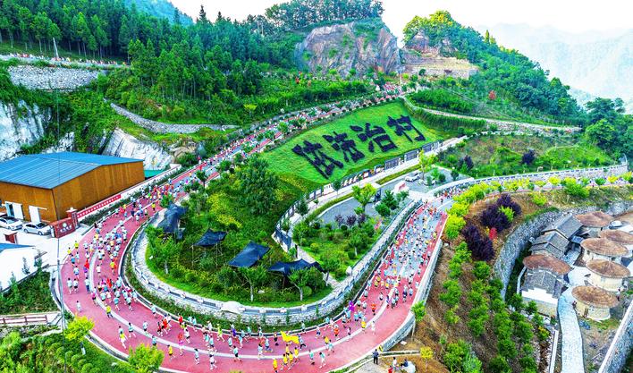 马拉松参赛选手在保康县尧治河村美丽的道路上奔跑。 (杨韬 摄)