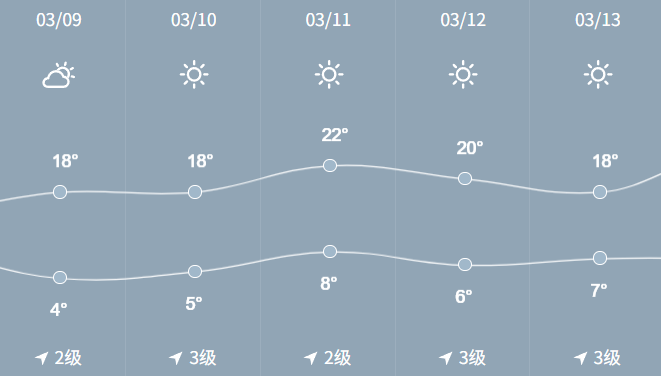 今天是2026年3月9日,星期一,多云转晴,温度4℃到18℃,空气质量类别为良。