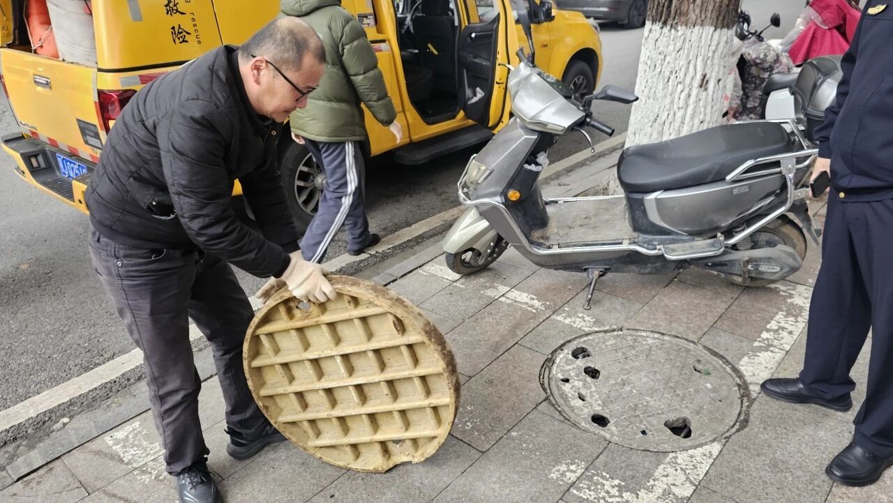 从线上留言到线下联动,一场高效的为民服务“接力赛”就此展开。2月27日上午,市政部门工作人员根据门店提供的破损井盖清晰图片,精准匹配了相同型号和规格的井盖。到达现场后,工作人员迅速行动,将破损的旧井盖移除,并安装上了安全完好的井盖,彻底消除了这一潜在的安全风险。