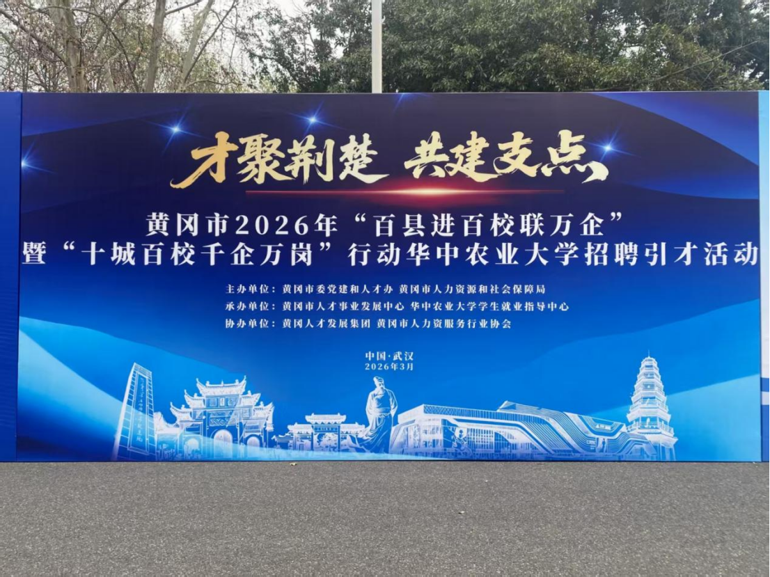 本报讯(通讯员 罗成伟)3月19日下午,黄冈市2026年“百县进百校联万企”暨“十城百校千企万岗行动”华中农业大学招聘引才活动成功举办。红安县公共就业与人才服务中心组织4家县内重点企业参会,带来60余个优质岗位,现场接收简历20余份。
