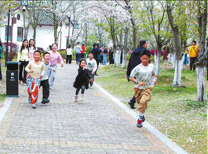 随着天气渐暖,黄州遗爱湖公园霜叶松枫景区的樱花进入盛花期,众多市民到樱花园踏青赏花。