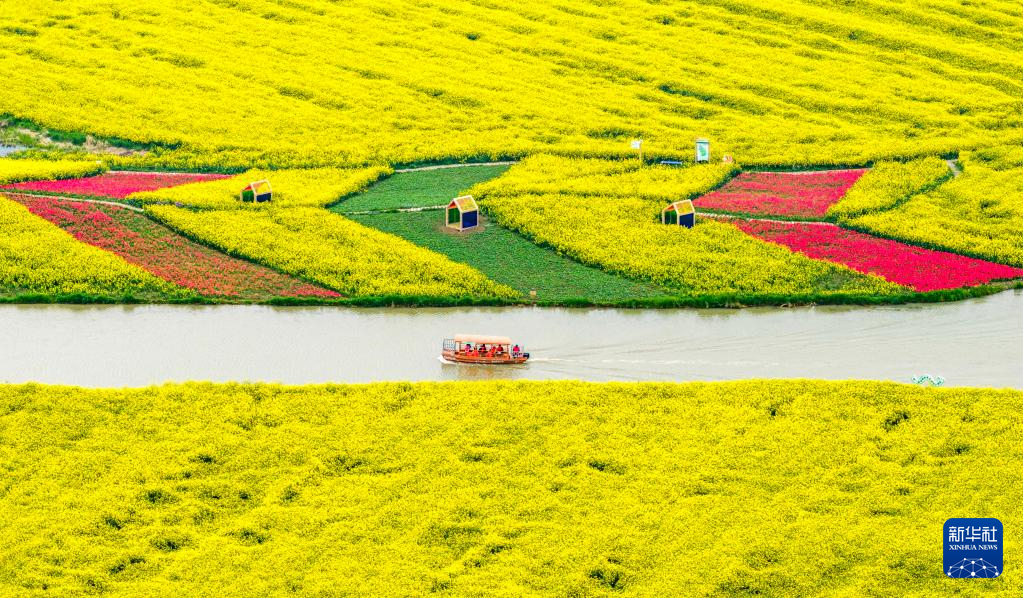极目远眺,层层叠叠的花田与蓝天白云相接,微风拂过,花浪翻滚,花香四溢。