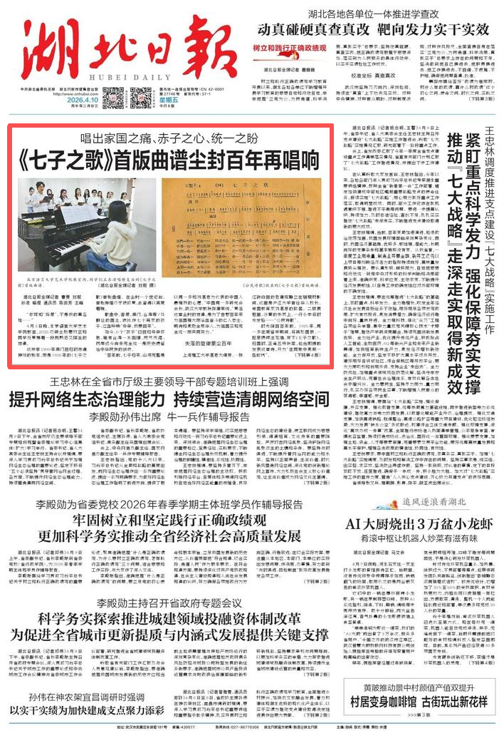 ▲4月10日《湖北日报》头版