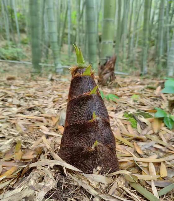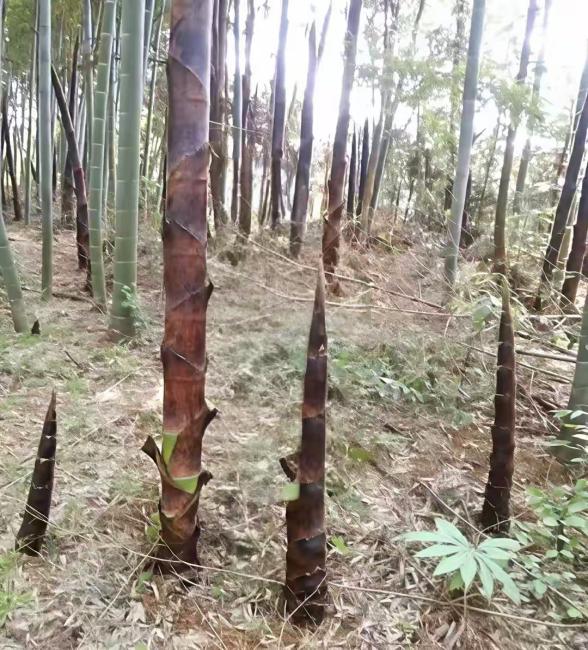 4月7日早上,我刚刚抵达驻点村——咸安区大幕乡西山下村,脚跟还未站稳,便被大屋湾九组组长胡主用唤去他家后山挖笋。四月的山林,新绿如洗,竹影婆娑,风过处,叶声簌簌,似低语,似轻唤。阳光自密匝匝的竹叶缝隙间漏下,在松软腐叶铺就的地面上,洒了一地碎金。我握着一把小锄头,跟在胡组长身后踏进林子,才几步,脚下已处处是破土而出的笋尖:有的刚破土,只露出黄褐色的笋尖,怯生生顶开枯叶;有的已长到膝盖高,裹着深褐色的笋壳,毛茸茸地立在斜坡上,像一簇簇蓄势待发的青翠箭镞,静候一声春雷。
