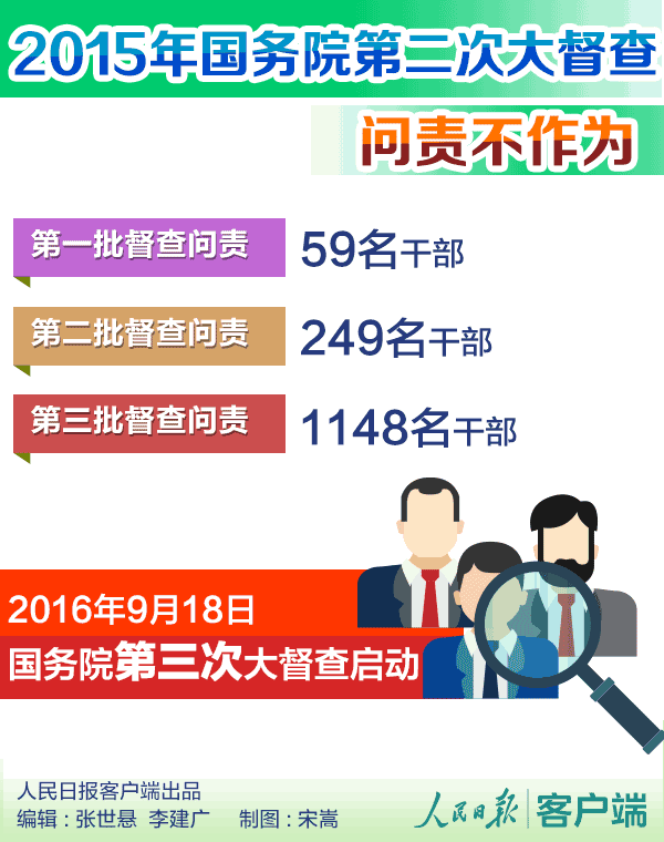 2015年,国务院第二次大督查首次对行政不作为进行了问责,7个省的59名干部受到处分。之后,在跟踪审计和专项督查的基础上,还连续开展了两批督查问责,相继有1397名干部因庸政懒政怠政和不作为被相关地方严肃问责。今年9月18日,国务院启动第三次大督查,20个督查组分赴各地各部门,“为官不为”再次成为督查的重点。 新闻多看点 2013年12月30日,中央政治局决定成立中央全面深化改革领导小组。到2016年9月24日,已满满走过1000天。今天就一起来看看,深改组这1000天,出台了哪些与你我息息相关的意见措施吧!