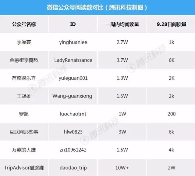 一些微信大号状况对比